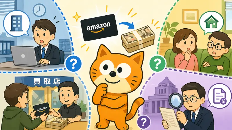 Amazonギフトカードの売却は「財産の処分」として扱われ、雇用契約上の副業には該当しません。就業規則の文言次第のケースもあるため、心配な場合は規定をご確認ください。
